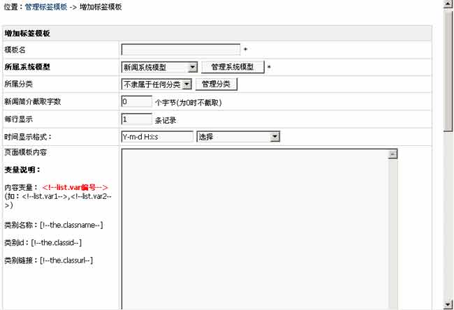 至于更多鏈接是:“[!--the.classname--]”、“[!--the.classurl--]”(也就是“頁(yè)面模板內(nèi)容”里有效) |