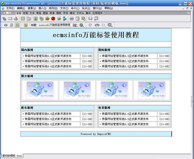 列表頭和列表尾用[!--empirenews.listtemp--]表示,是固定的,代表循環(huán)的開始和結(jié)束。