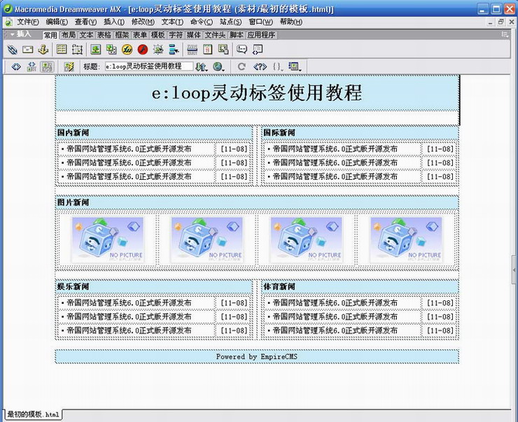 | 最后,例1調(diào)用國(guó)內(nèi)新聞欄目最新信息的靈動(dòng)標(biāo)簽語(yǔ)法即為(粗體部分): |