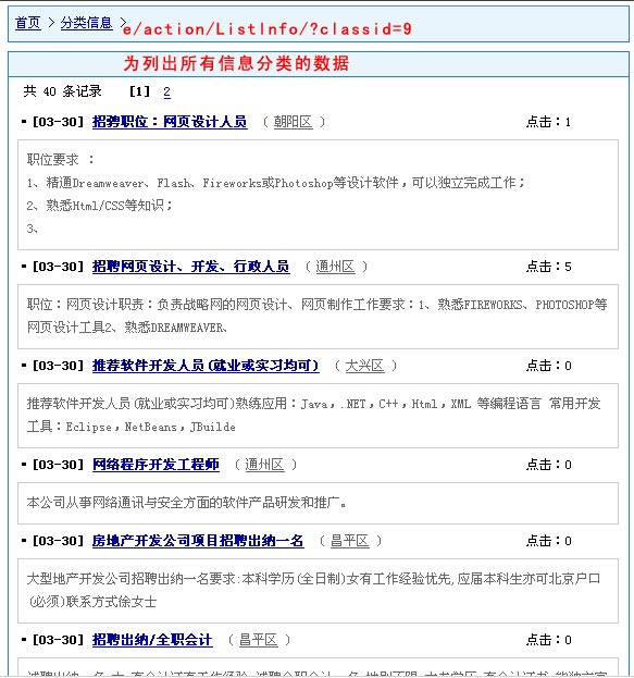 | 2、假設(shè)“e/action/ListInfo.php?classid=9”顯示出的是所有信息分類欄目的數(shù)據(jù)。 |