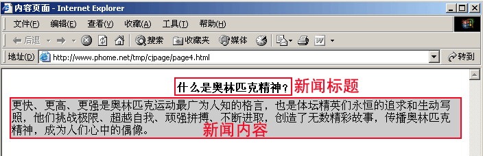 | (1)、標題正則:由源代碼內(nèi)容我們得出“新聞標題”正則為: |