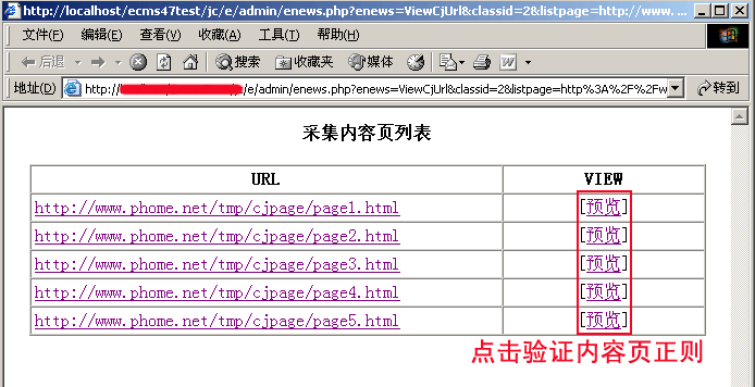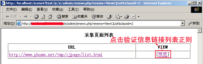 | 3、上面鏈接列表頁及內(nèi)容頁內(nèi)容預覽無誤后方可進行采集操作。 |