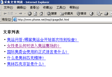 | 2、點擊上面的“開始采集”鏈接,開始進行采集; |