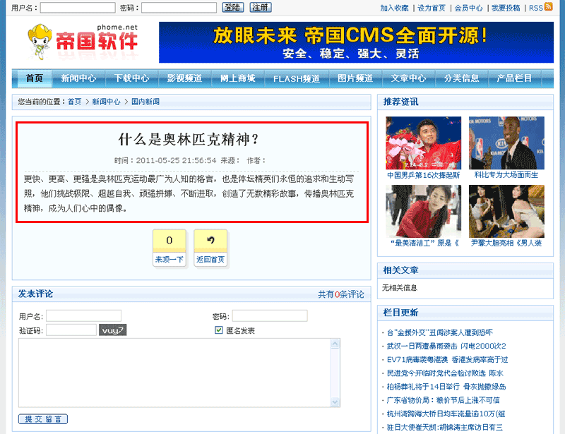管理欄目信息也可以看到我們剛才入庫的信息: