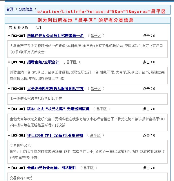 方式,模糊匹配則只要包含字符值即可符合條件。例:“e/action/ListInfo/?classid=9&ph=1&email=abc.com”就能列出郵箱地址中包含“abc.com”字符的的所有分類信息。