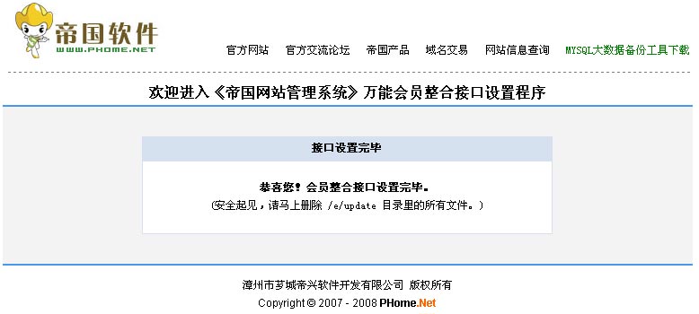 2、運(yùn)行接口程序“e/update/index.php”,進(jìn)入如下界面: