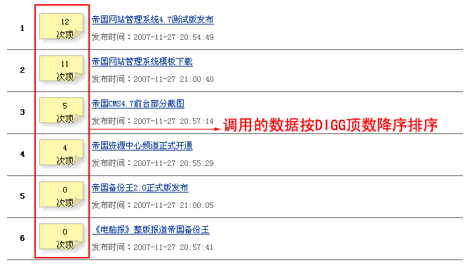 實(shí)現(xiàn)要點(diǎn): 系統(tǒng)本身就內(nèi)置了digg的功能,只是沒有在數(shù)據(jù)表中直接內(nèi)置digg字段,所以我們只需增加digg的字段就可以實(shí)現(xiàn)頂與踩踏的功能。 (為什么不內(nèi)置所有會(huì)使用到的字段呢?主要是為了系統(tǒng)的穩(wěn)定性,做到字段按需增加,使系統(tǒng)穩(wěn)定性優(yōu)化到最佳)