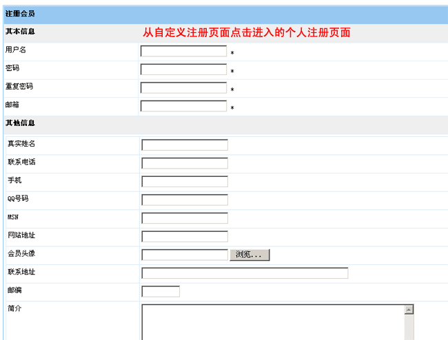 三、增加自定義頁面后,返回“管理自定義頁面”,然后點(diǎn)擊頁面即可看到自定義注冊頁面的效果: