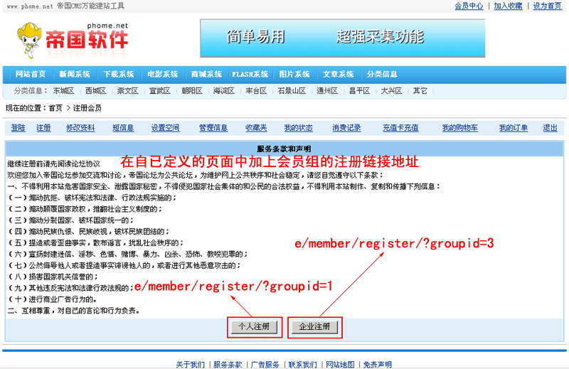帝國網(wǎng)站管理系統(tǒng)V4.7功能解密 多會員組的注冊導(dǎo)航制作