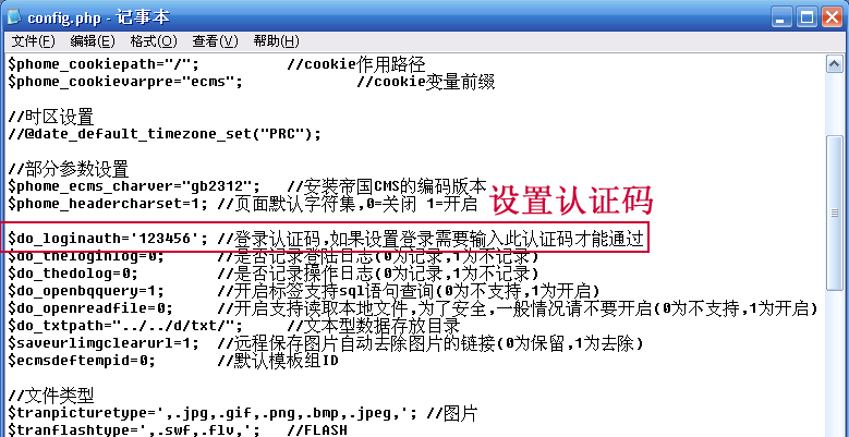 認(rèn)證碼設(shè)置可配置e/class/config.php文件的“$do_loginauth”參數(shù),如圖: