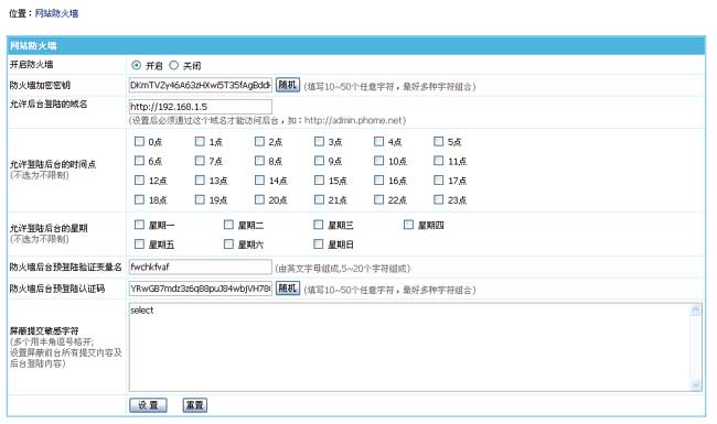 有關(guān)帝國(guó)CMS新版防火墻介紹可以查看:/zx/pup/368.html