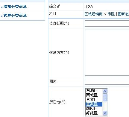 1、提交信息選擇地區(qū)修改:系統(tǒng)設(shè)置-》數(shù)據(jù)表管理-》管理字段-》修改myarea字段的初始值。
