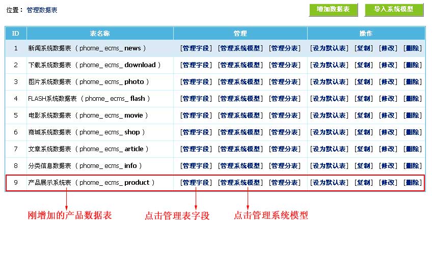 | 說明:由于只是教程,所以我們下面只實例制作比較簡單的產(chǎn)品系統(tǒng),用戶也可以依自己實際情況增加產(chǎn)品參數(shù)字段。 |