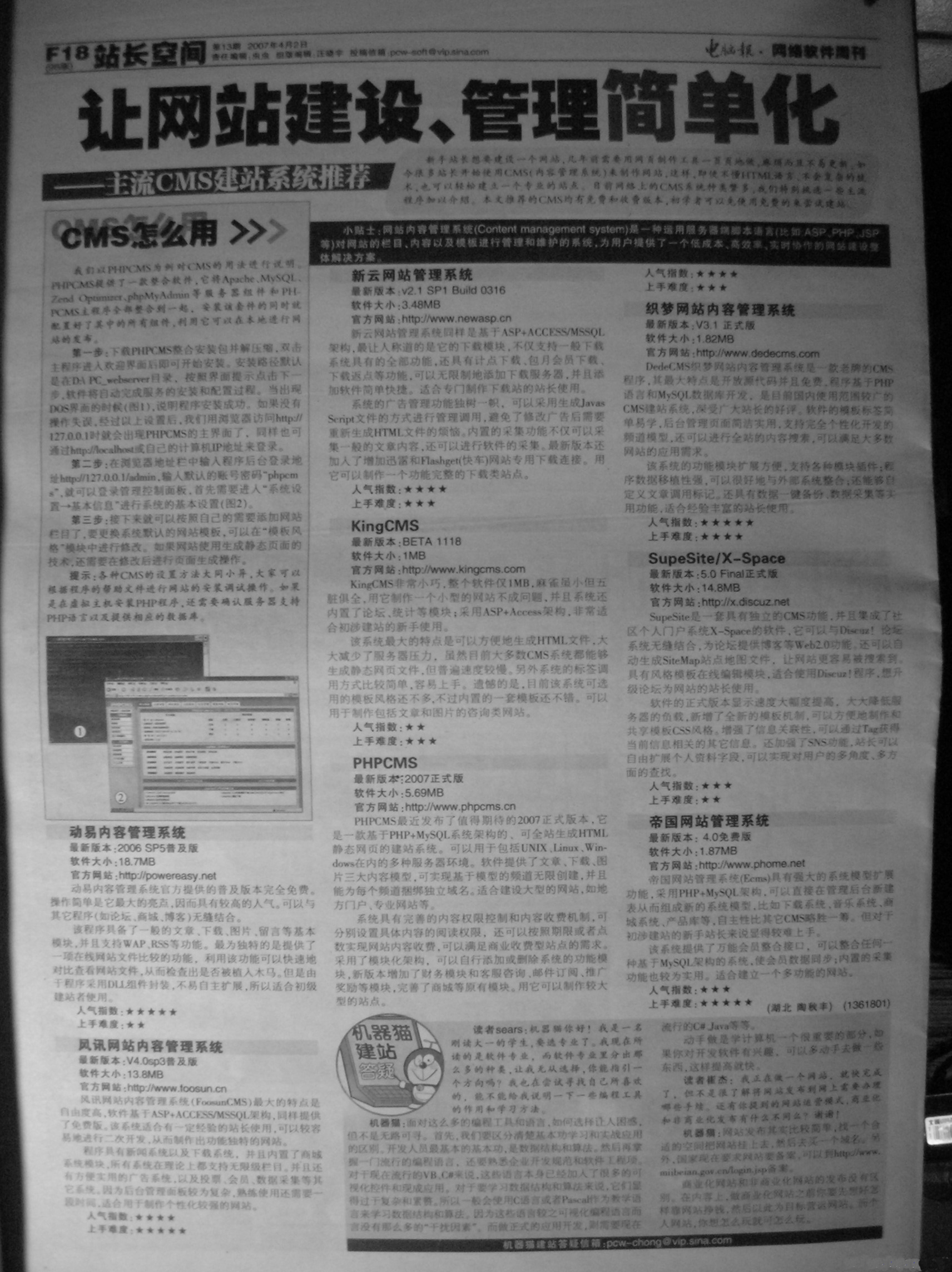 《電腦報(bào)》4月2日版推薦帝國(guó)網(wǎng)站管理系統(tǒng)