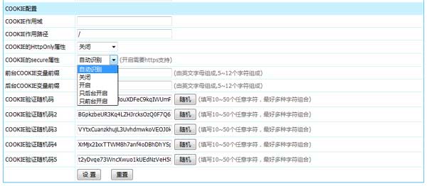 4、安全設置新增“COOKIE驗證隨機碼3”、“COOKIE驗證隨機碼4”、“COOKIE驗證隨機碼5”設置,方便后續(xù)擴展程序加密組合。