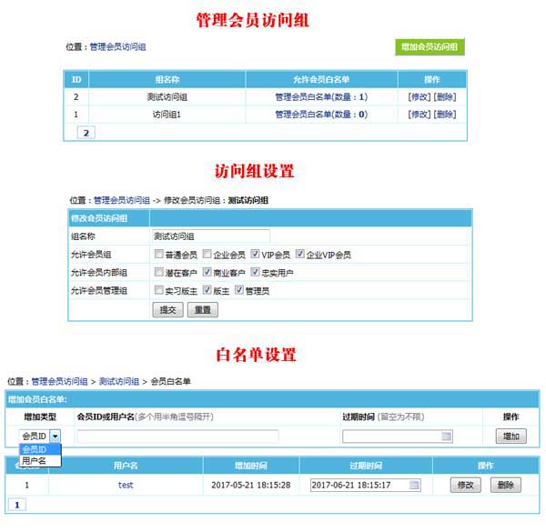 4、支持按會(huì)員白名單進(jìn)行訪問(wèn)限制,可任意加入允許的指定會(huì)員列表。