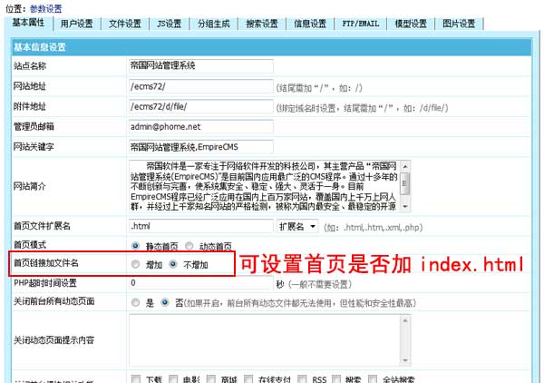 帝國(guó)CMS7.2導(dǎo)航首頁(yè)鏈接可設(shè)置是否加文件名,更人性化