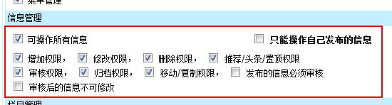 帝國CMS7.0信息管理權(quán)限分配更細(xì),權(quán)限控制更靈活