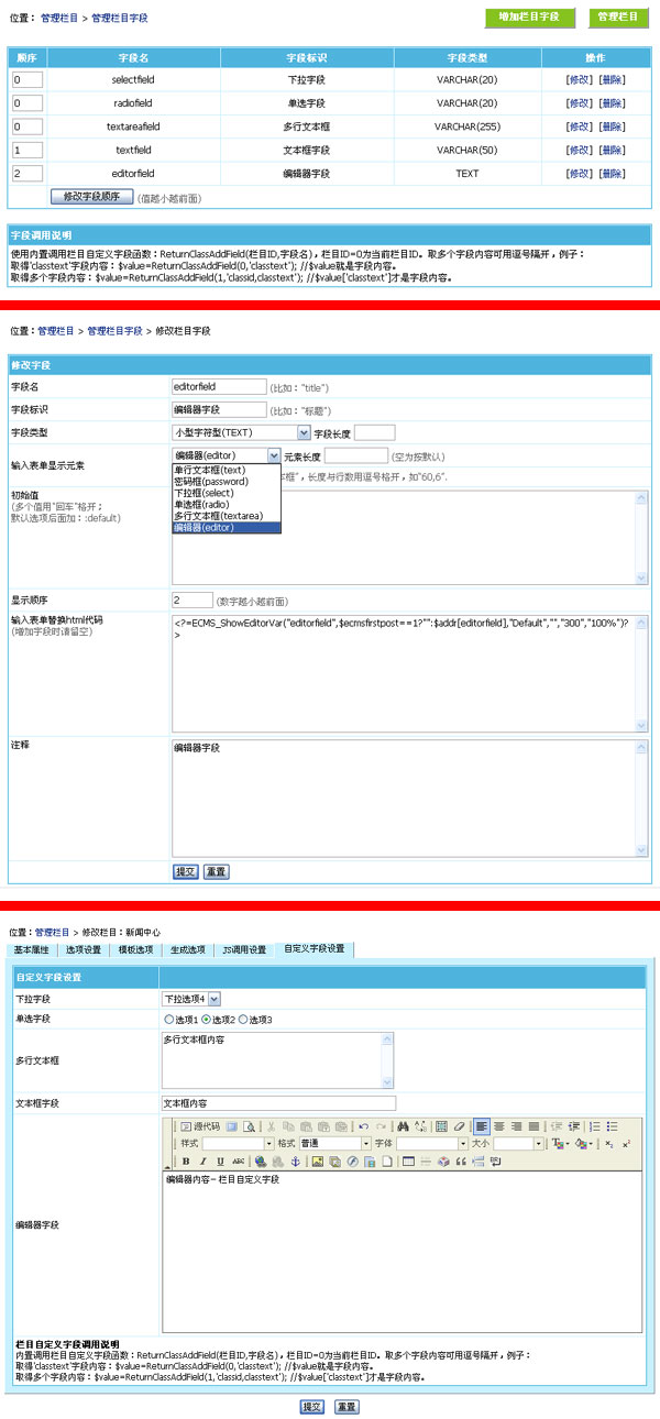 帝國CMS 6.6版新增欄目屬性自定義字段功能,在系統(tǒng)支持信息屬性自定義字段的基礎上,6.6版又新增了欄目屬性自定義字段功能,讓靈活系統(tǒng)更靈活。
