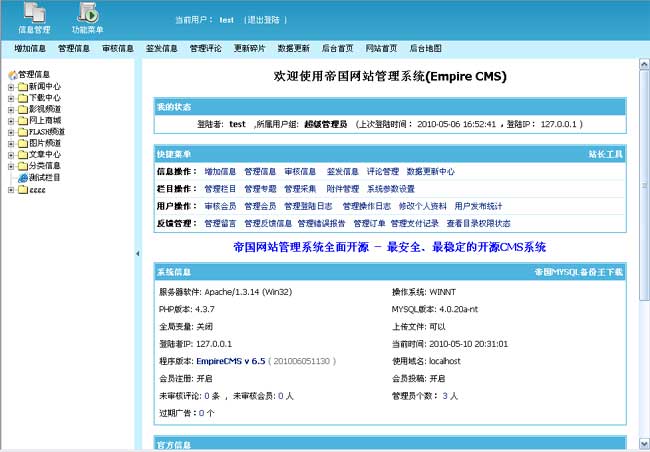 V6.5默認(rèn)內(nèi)置管理員和編輯兩種后臺(tái)界面
