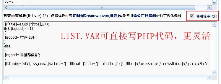 帝國CMS 6.0模板list.var支持程序代碼,更靈活