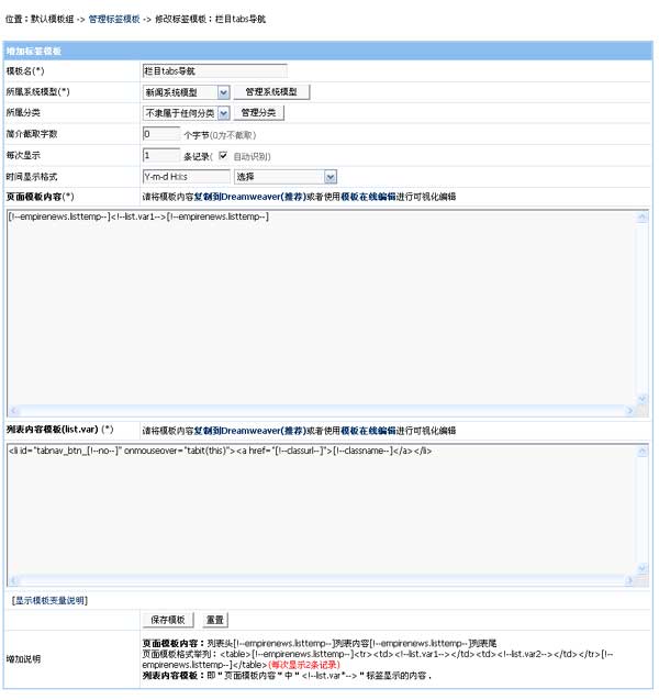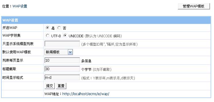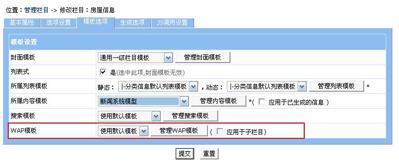 欄目選擇使用的WAP模板,不同欄目可設(shè)置不同的WAP模板