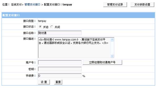 后臺支付接口管理