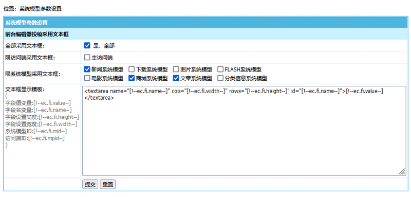帝國(guó)CMS8.0版前臺(tái)投稿編輯器支持采用多行文本框